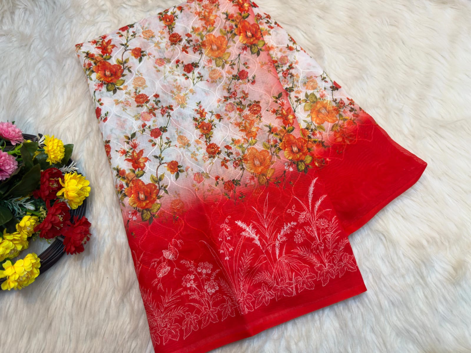 অরজিনাল রূপসী শাড়ি ( সাদা লাল )